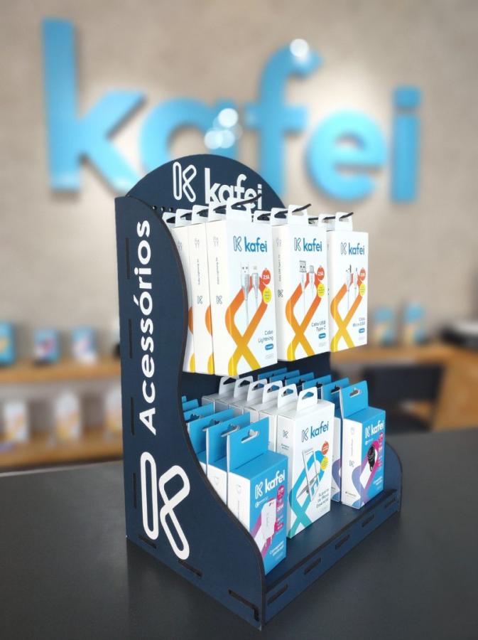 No portfólio da Kafei, estão carregadores, cabos, fones de ouvido e suportes para diferentes superfícies. Um dos principais diferenciais da marca é oferecer produtos certificados, de qualidade internacional, com homologação da Agência Nacional de Telecomunicações (Anatel), — A Kafei trabalha com produtos de alta qualidade, levando tranquilidade para o dia a dia das empresas que revendem os nossos produtos. Possuímos garantia de até três anos nos acessórios da marca, além de troca facilitada — comenta Emerson Marcelo de Quadros, sócio e Diretor Comercial da empresa.