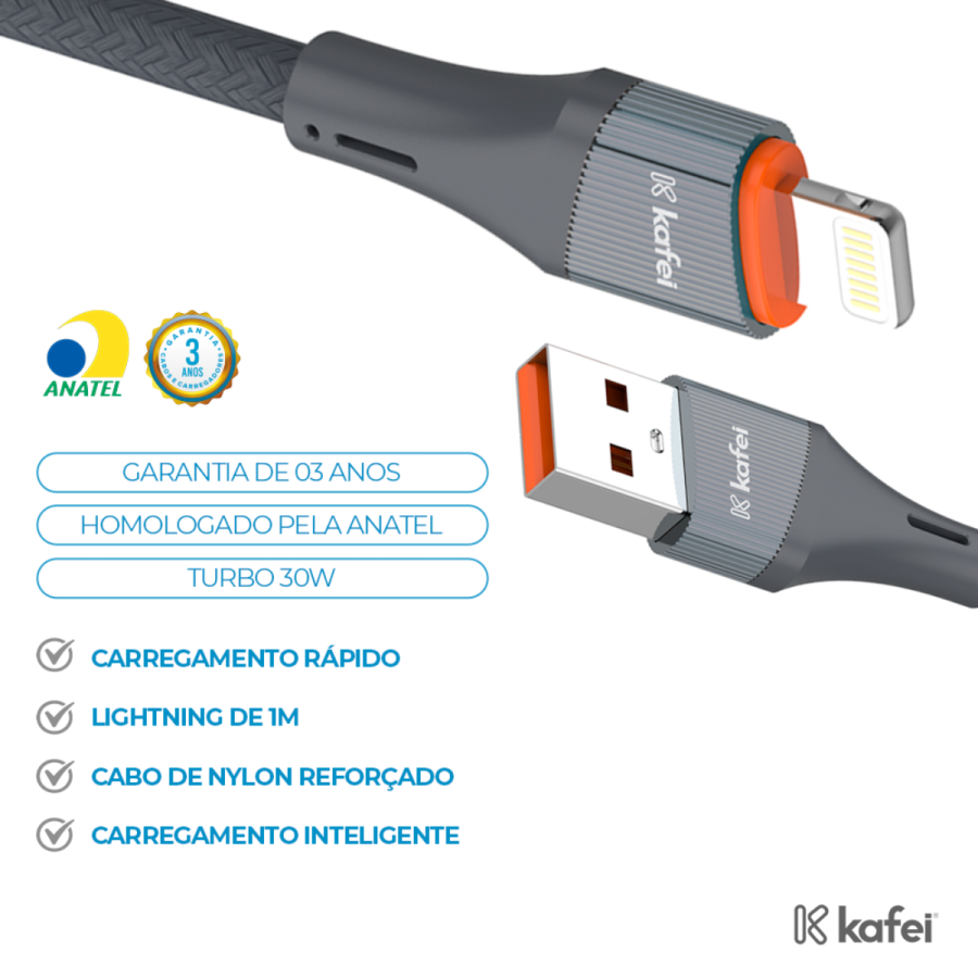 Feito em nylon trançado ultra resistente e conectores com proteção especial antioxidação, é o cabo perfeito para o seu dispositivo iPhone 8 ao 14 e iPad.